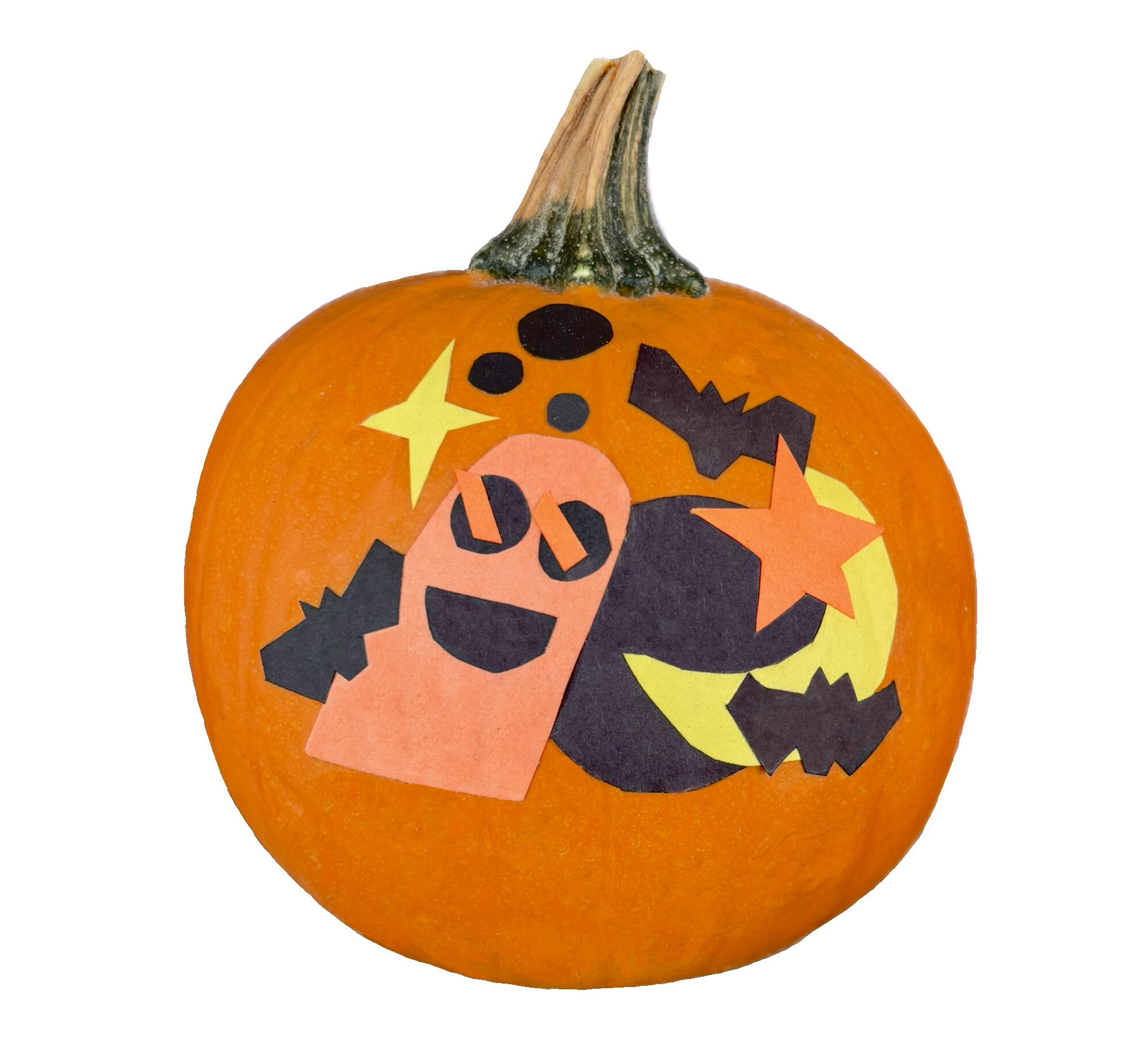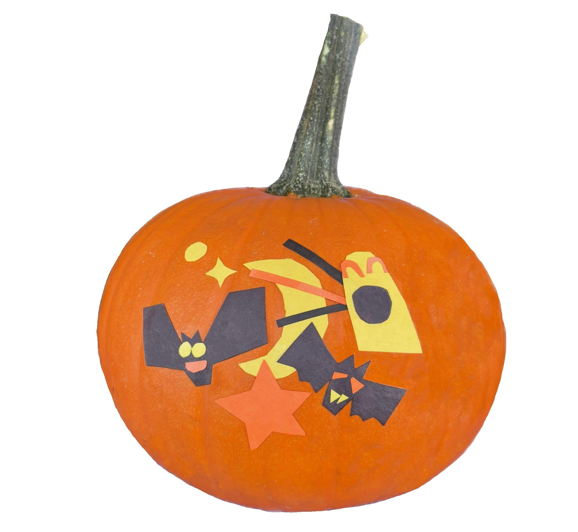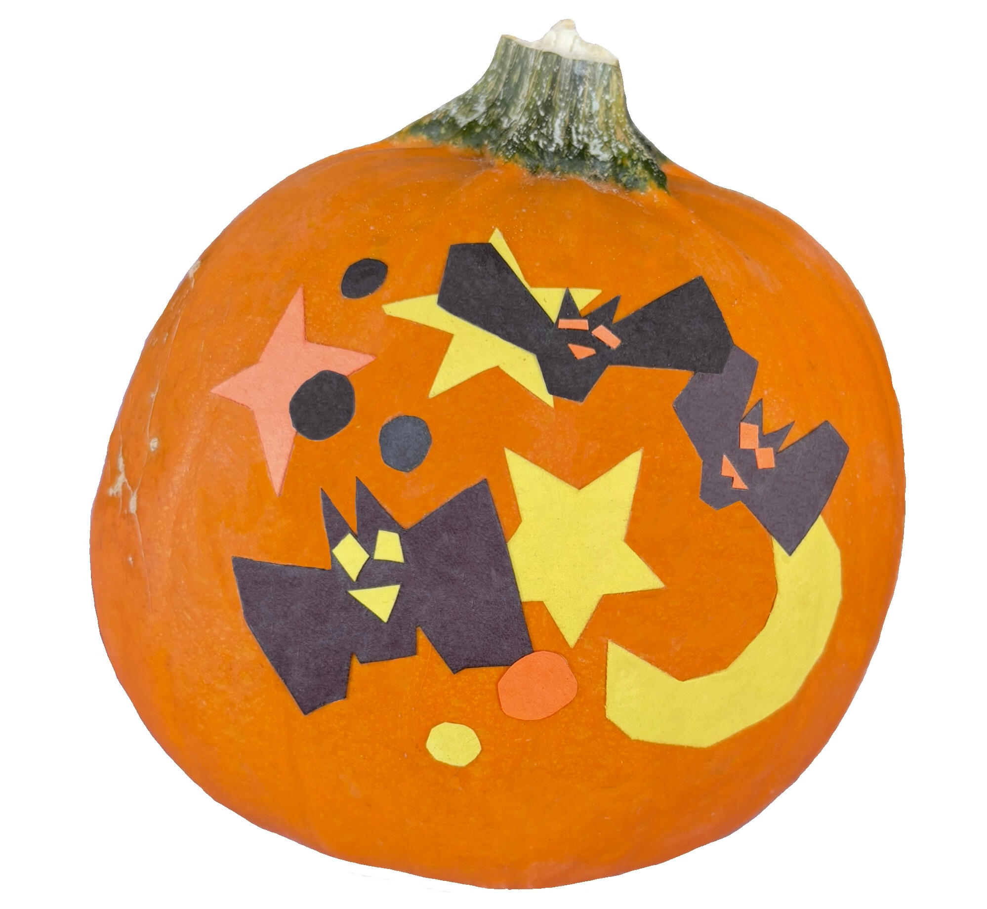 Batty bats and ghostly ghosts. Paper collages on pumpkins.