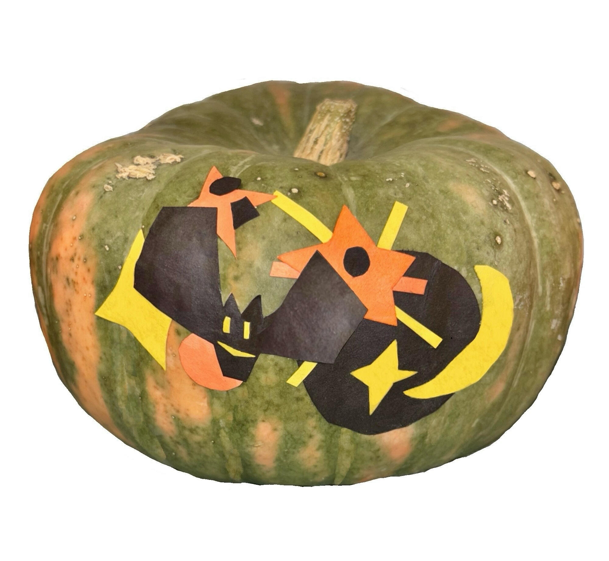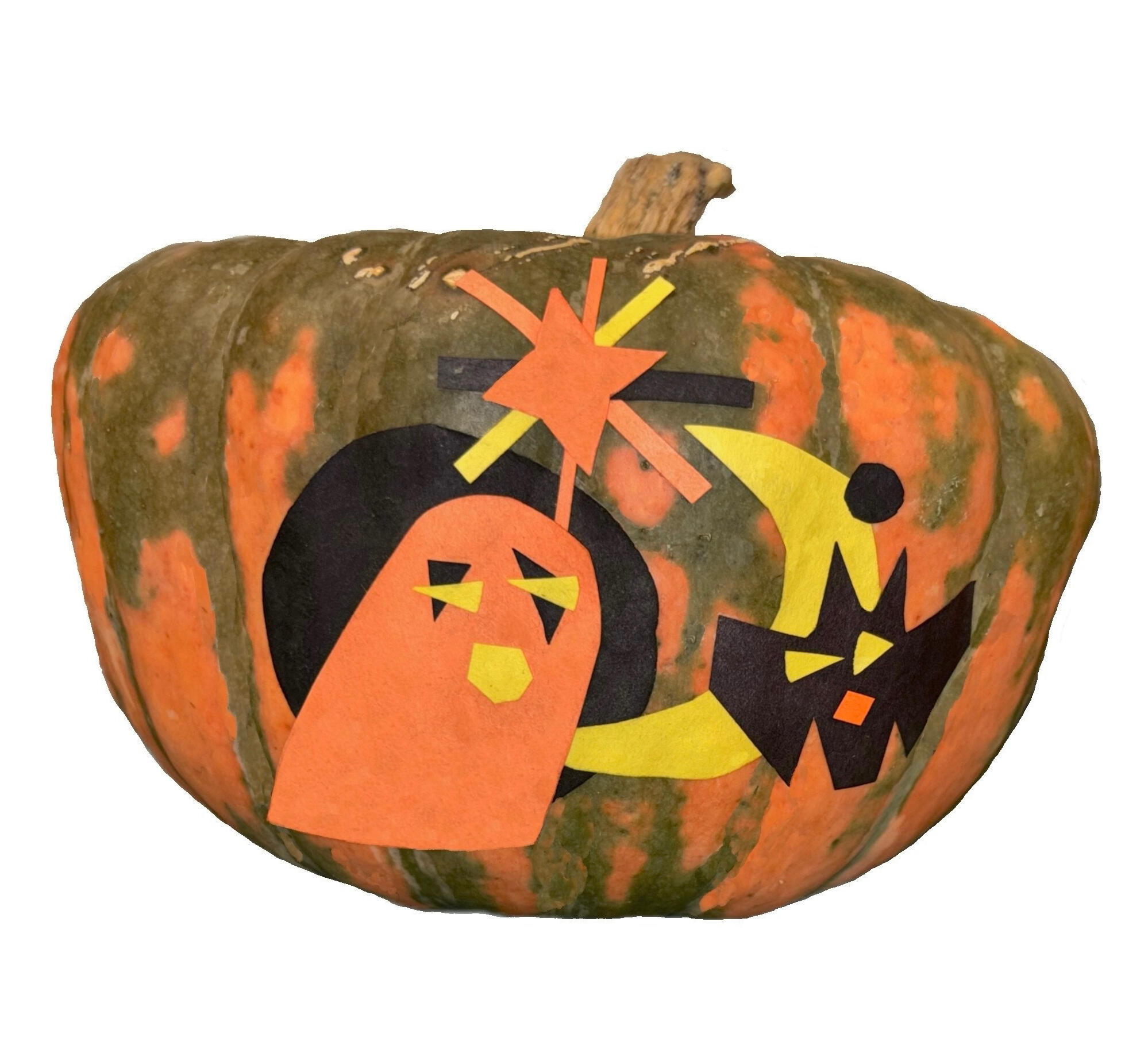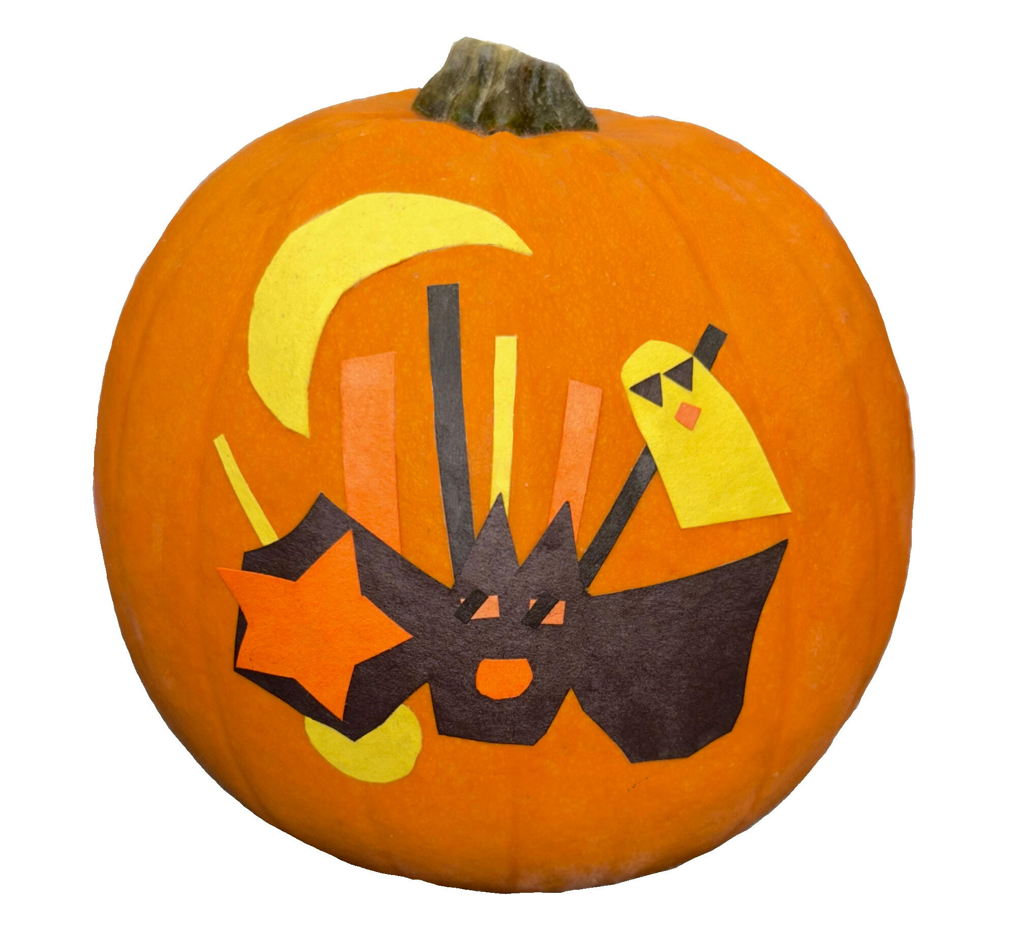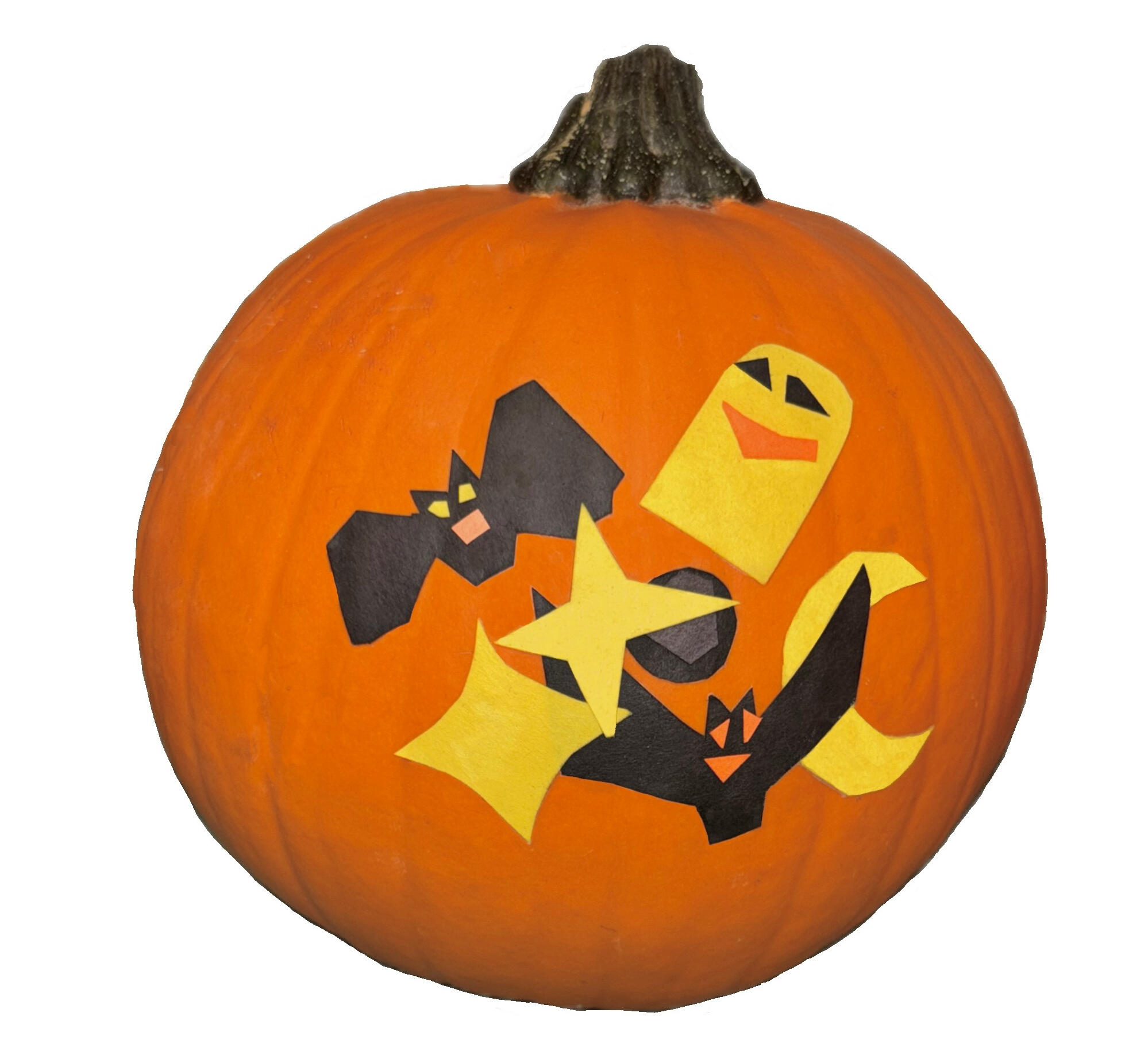 Batty bats and ghostly ghosts. Paper collages on pumpkins.